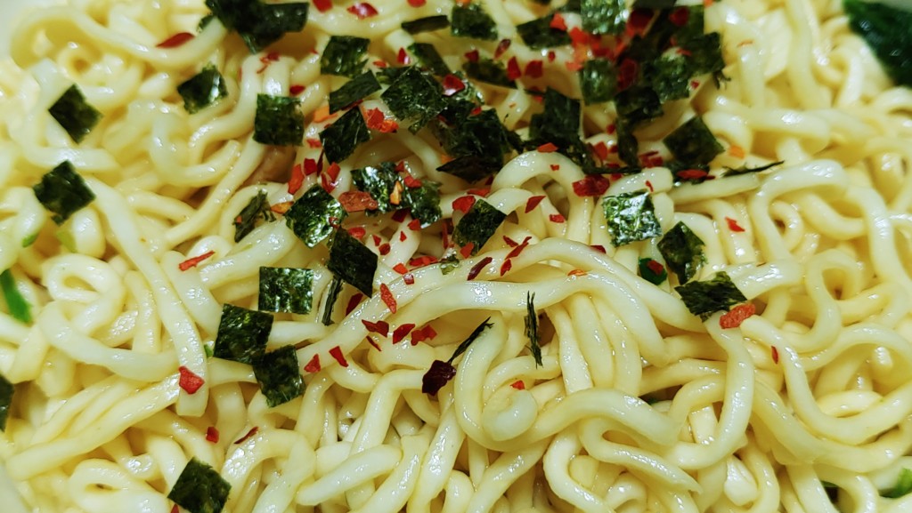 特性豆板醤をかき混ぜると麺がうっすら赤くなりました。激辛とうたっているだけあってかなり辛いです。パッケージには「まろやかな鶏油の香り」とありますが、特性豆板醤の香りが強くてあまりわかりませんでした。