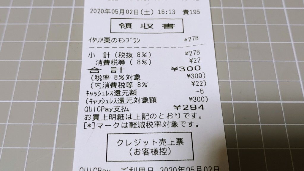 『イタリア栗のモンブラン』の価格は278円(税込み300円)です。コンビニスイーツの中でもちょっと高めな印象です。